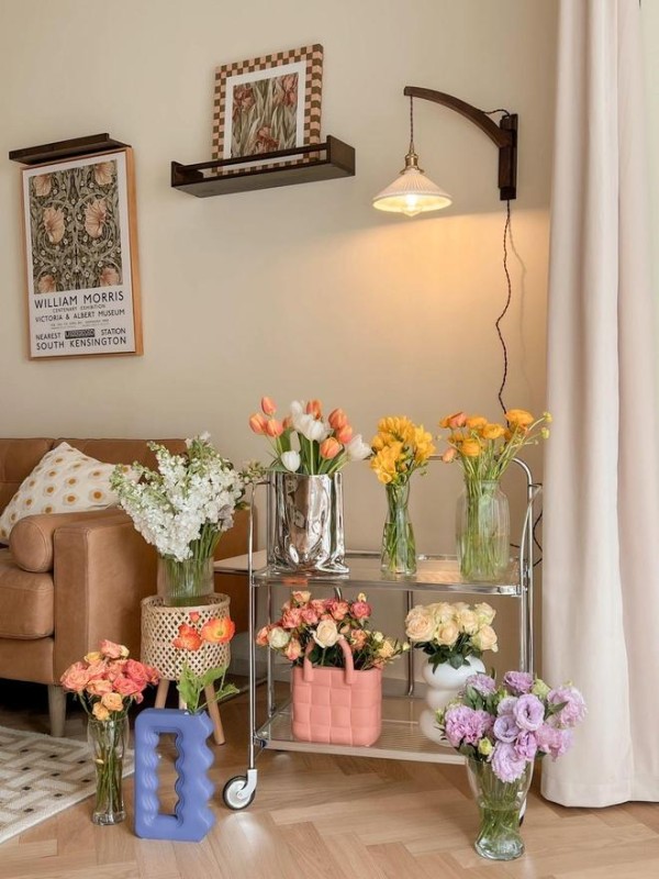 屋主也很注重生活的仪式感,她每周都会购买一些鲜花,把它们插在不同样式的花瓶里,