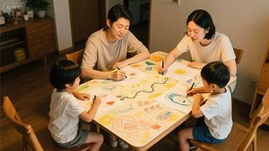 经过一段时间的家庭“艺术游戏”实践,我最大的感受是——孩子的表达力、动手能力、甚至社交力都悄悄变强了。大宝喜欢把盲画作品做成小册子,送给爷爷奶奶当礼物;二宝会带着邻居小伙伴一起组织“生活乐队大赛”;连爷爷都被拉进来一起编故事、玩迷宫,三代同堂,其乐融融。