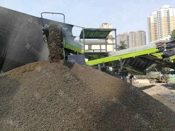 初级筛分机主要作用是将原料中的细料分离出来,为下道工序中的人工分拣做准备,让适量粒径的材料进入人工分拣工段。由于这部分成品料中含杂物相对较少,筛分出来的成品料既可以直接用作回填材料,也可以进一步筛分进行分级,还可以再次进入破碎机,破碎后使用。