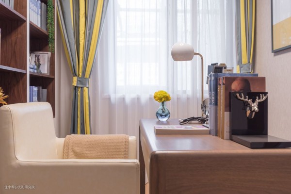 在房间内增加一张薄纱窗帘是一个改善“外部光线过于明亮”问题的好方法。轻盈的薄纱质地让直射房间的光线变得均匀柔和起来,既能充分利用自然光,还能避免直射光线反射电脑屏幕带来的视力损伤。