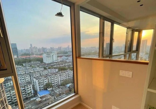 这种阳台,一般是很大的,整个一面都被连起来了,从客厅到厨房一直到卧室。