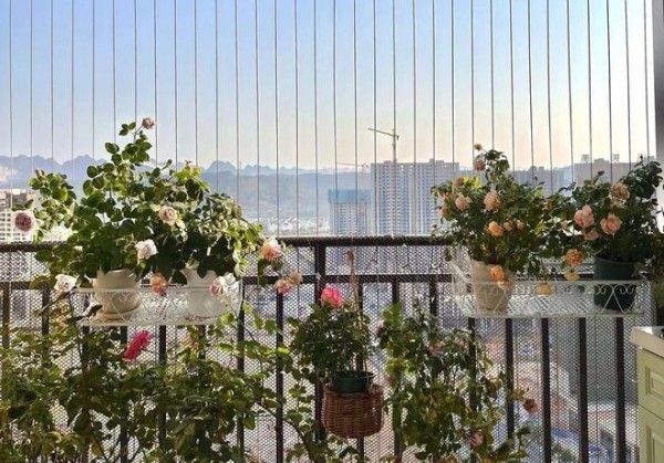 第二个功能就是可以实现养花。由于不封闭,露天的,养花更好。也是摆上一层一层的花架,打造成一个很漂亮的阳台花园。