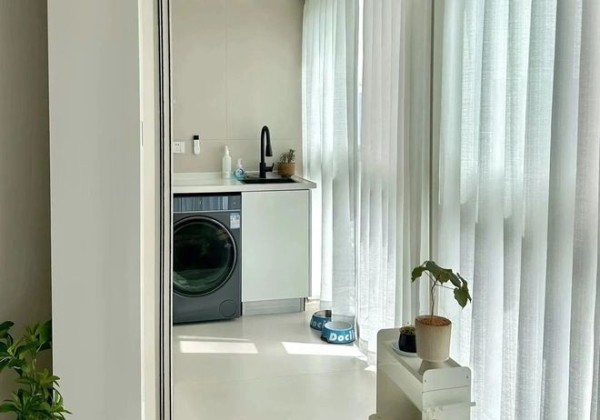 敞开区第一个功能,可以用来洗衣服。比如比较常见的就是设置洗衣机伴侣柜,设置晾衣架。简单的打造成一个洗衣机房。