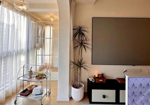 封闭以后,与客厅连成一体。这个区域的功能就很多了。可以实现休闲阳台,娱乐阳台,健身阳台等等。而且与客厅连成一体,会显得客厅宽敞更大。