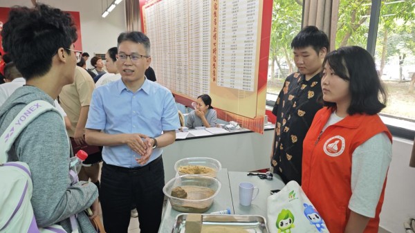 学院还特别邀请“沙漠土壤化”生态恢复技术科研团队在迎新现场搭建“移动实验室”,马银华教授通过“点沙成土”技术演示和互动讲解,将原创性、突破性、国际领先科研成果展示给现场报到的新生和家长;同学们还品尝了“沙漠土壤化”生态恢复技术种植的小番茄。学院迎新既用暖心细节传递人文关怀,更以硬核科研实力彰显学科魅力,让新生在踏入校门的第一天,就能触摸到土木工程学院的温度与力量,开启“知行合一”的求学新篇章。