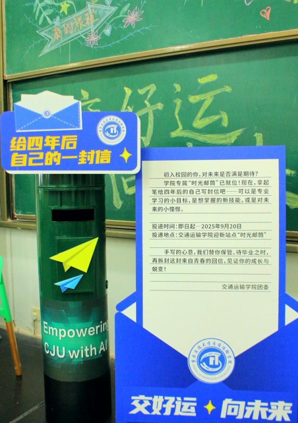 为帮助新生快速融入校园,传承学院精神,交通运输学院精心策划了迎新特色活动。“致未来的自己”时光信笺活动中,新同学们以未来毕业时的自己为倾诉对象撰写书信,信中可记录初入校园的感受、大学期间的目标与期许;专属“时光邮筒”投递区,由专人负责信件保管,待新生毕业季时统一返还,让大家重温入学初心,见证成长蜕变。“敲响新旅程”特色打卡区放置了象征开启新征程的大鼓,每位新生完成报到后,可在这里击鼓鸣响,以此宣告正式成为交大学子,营造出热烈庄重的迎新氛围。