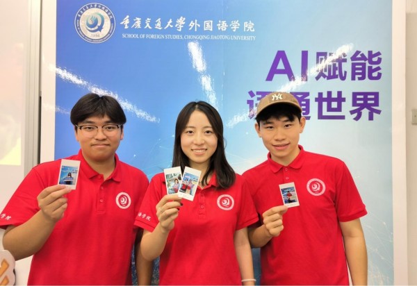 “AI赋能,语通世界”活动中,新生可选择感兴趣的语种,AI实时生成含其姓名的个性化外语欢迎词。手持欢迎词合影后,经AI处理能化作融合对应文化风格的艺术照,与欢迎词共同打印成纪念卡,让新生直观感受AI与跨文化交际的碰撞。