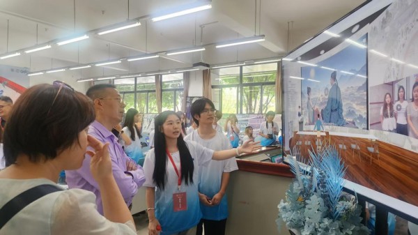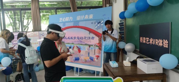 一方面,所有视觉设计与展陈作品,从环境设计、产品设计到视觉传达,无一不是在校生的课程作业与毕业设计精品,现场特别设置的“做彼此成就梦想的同行者”拼图墙,由师生共同拼出艺术梦想,生动彰显了学生之间的传承与互动。另一方面,新生们可通过VR设备身临其境体验桥梁艺术魅力,新生和家长们还驻足观看学院元宇宙教学平台上《万户幻梦 星途煜行》等教学案例展示,现场惊叹连连。人工智能与的艺术交融,极大地激发了新生对专业未来的无限憧憬与探索欲。