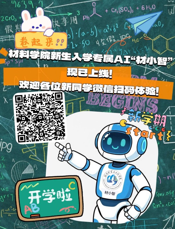 材料科学与工程学院以“材汇新程,料绘初心”为主题,为新生打造了一场别开生面的迎新盛宴!学院精心准备了“光影第一课”,用震撼的学科宣传片点燃同学们的专业热情;设计了趣味十足的“朋辈引路”探索活动,让新生在轻松打卡中快速熟悉学院环境;更有AI助手“材小智”全程陪伴,为萌新们提供智能导航和知识互动,科技感满满!