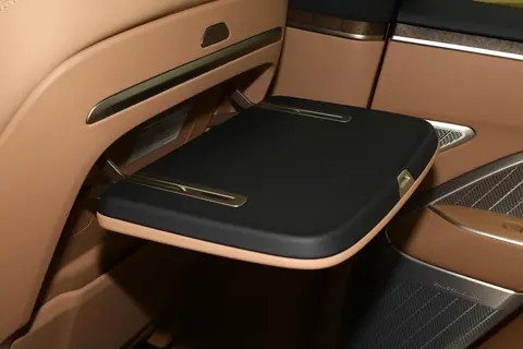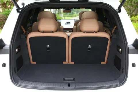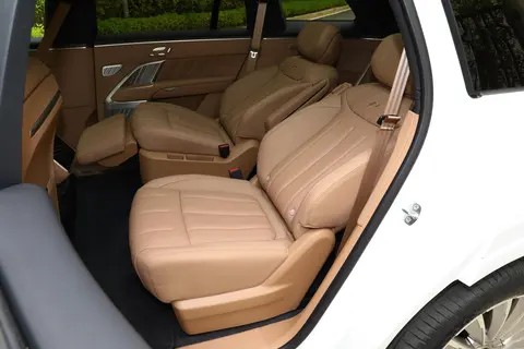 第二排独立座椅配备零重力模式与1050mm最大腿部空间,支持电动调节、腿托调节及加热/通风功能,头枕采用航空级设计,两侧护翼可手动调节角度,为乘客提供颈部支撑;座椅内侧设置触控屏,可独立控制空调、座椅、多媒体等功能,避免干扰前排驾驶。第三排座椅虽空间相对紧凑(腿部空间680mm),但加热功能与25°靠背调节范围的加入,体现了对每一位乘客的平等关怀;座椅坐垫采用加厚设计,填充物柔软度优于同级竞品,用户实测反馈“短途乘坐无压力”。