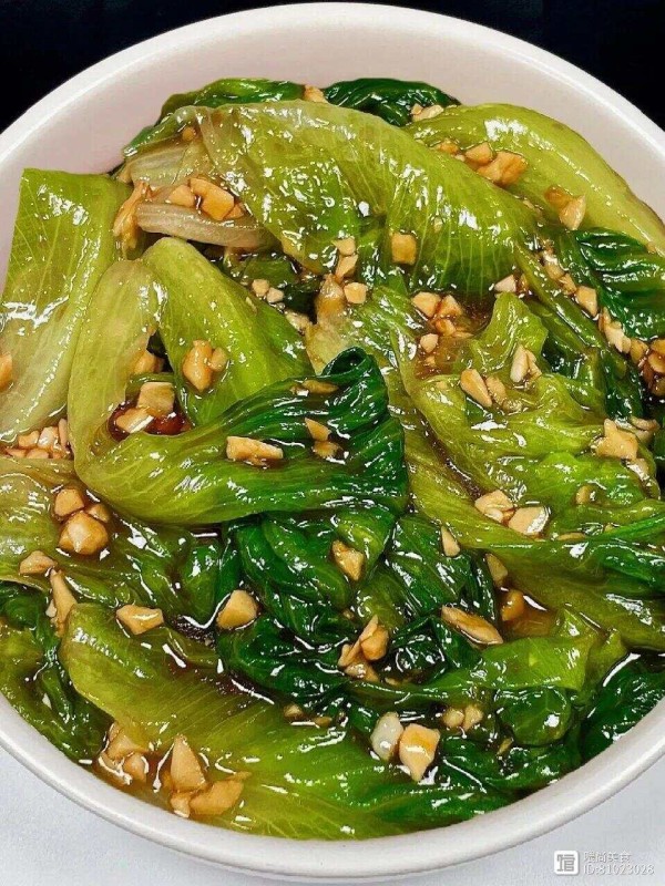 2、起锅烧油,油热放入蒜末,煸炒出香味,加入适量的清水,加入1勺生抽、1勺蚝油,大火熬至浓稠,浇在生菜上即可。