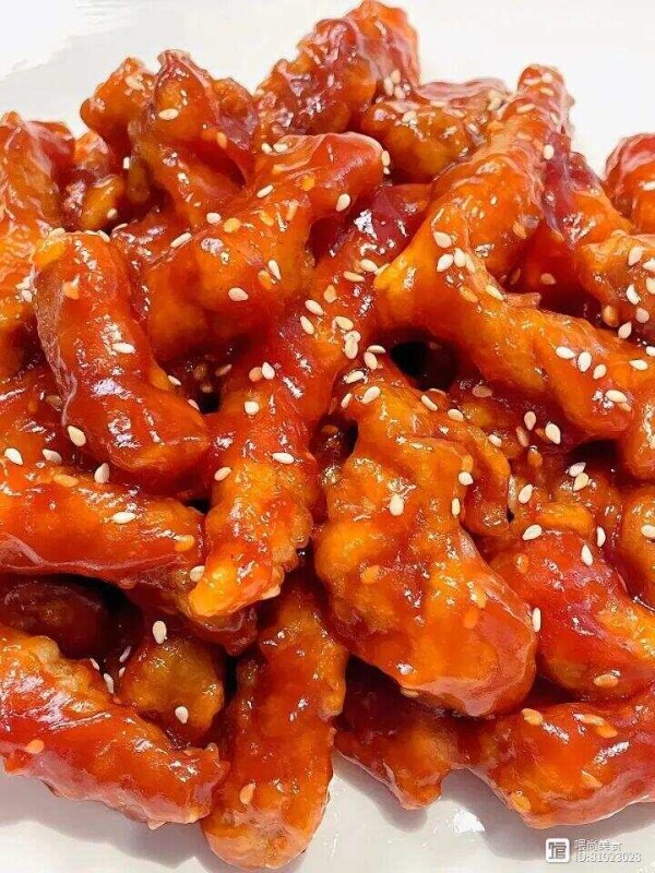 3、起锅烧油,油温六成热,放入里脊肉,中小火炸至金黄酥脆,捞出控油。锅留底油,淋入调好的料汁,大火熬制浓稠,放入炸好的里脊肉,翻炒均匀即可出锅。