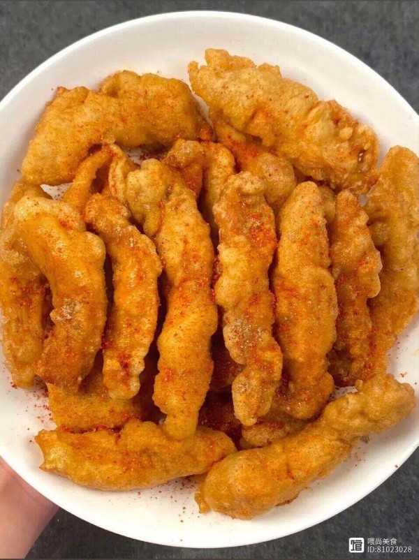 3、将面糊倒入腌制好的牛肉中,抓拌均匀。起锅烧油,油温六成热,放入裹好面糊的肉条,中火慢炸,炸至表面金黄酥脆,捞出控油即可。