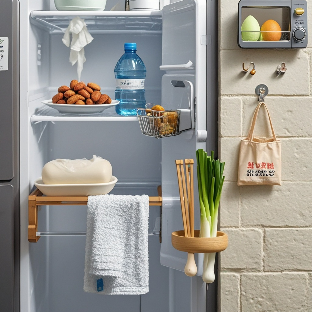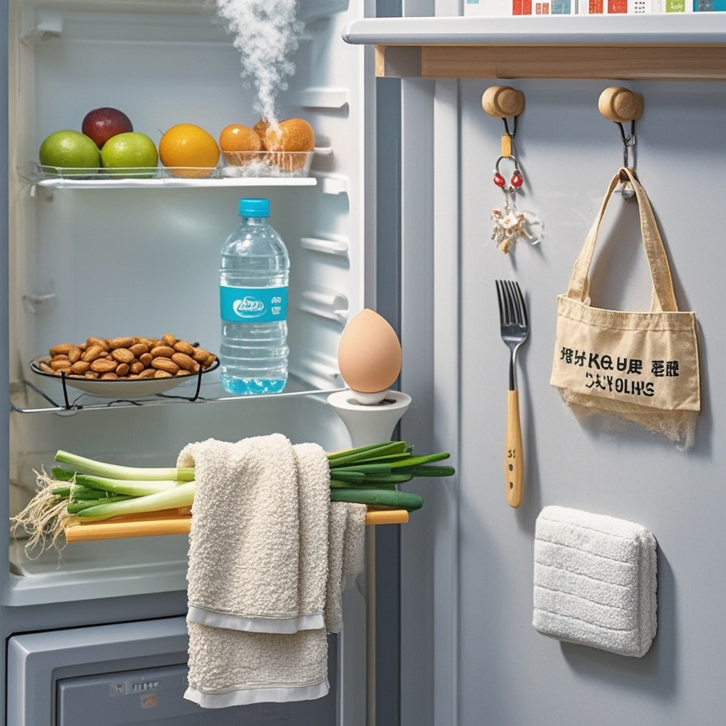 1️⃣ 打湿用过的洗脸巾,拧干后平铺放入冰箱里,就能快速给冰箱除味。