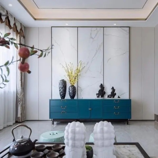 ▼当然背景墙的选择尽量选择白、灰、浅蓝等基础色,无论是在搭配设计风格时,还是搭配软装家居都不容易出错;时下最流行的莫兰迪色系也可以尝试一下;