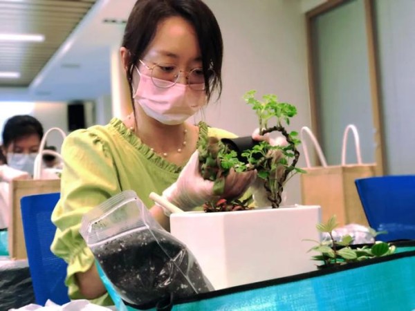 近日,浦东新区绿化委员会办公室、新区绿化管理事务中心联合张江镇文化服务中心,以花为媒,为张江的社区居民带来一场沉浸式“绿色课堂”。40余位参与者体验园艺手作植物组盆DIY,模拟家居空间的绿植布置,通过场景化展示,向大家呈现了“园艺进家庭,绿化美生活”的美育理念。