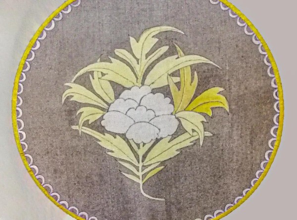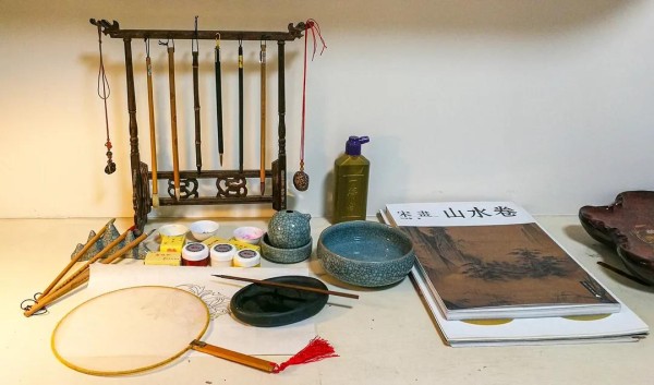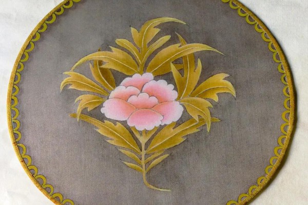 准备材料:空白熟绢团扇一把、临摹底稿若干、狼毫勾线笔一支、兼毫染色笔若干、墨汁、颜料(藤黄、花青、赭石膏、曙红膏、钛白粉)。