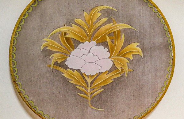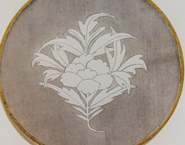 步骤三:再把钛白粉薄薄涂抹在图案上面做底,这样既可以让熟绢更容易着色,也能使将来要填涂的色彩在半透明的扇面更加突出。