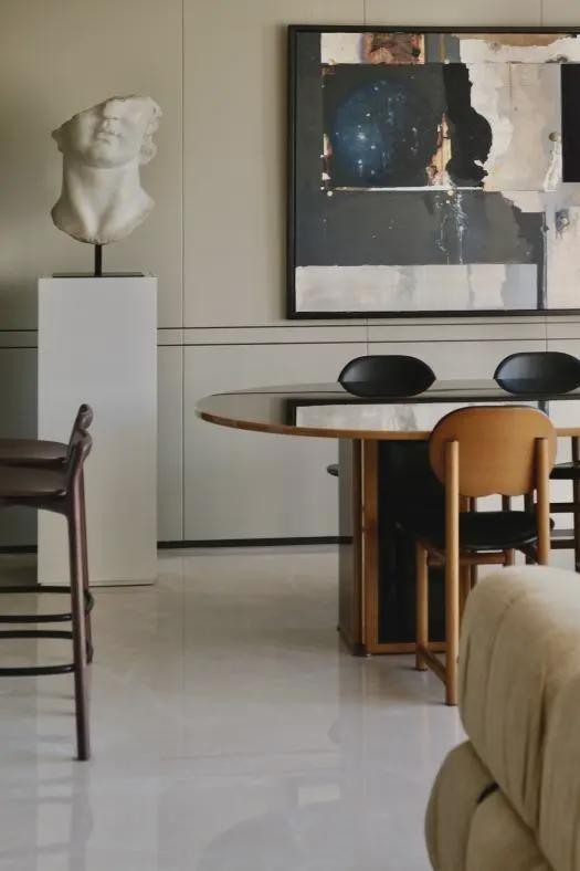 本次展览新增了诸多跨越时间的经典家居艺术品,更是特别选用 Flexform 家具作为客厅区域的核心亮点,多款由设计大师 AntonioCitterio 设计的经典作品,在1996年设计的A.B.C.扶手椅,以现代主义风格为灵感,采用黑色真皮与金属管结构,以低矮座椅展现当代美感。而Carlo Colombo设计的Alison扶手椅,则融合了斯堪的纳维亚传统与当代设计,以实木结构与丰厚座椅柔软贴合,精巧的比例适配多种空间环境,具有超越时间和时尚的魅力。