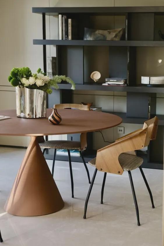 Afra&Tobia Scarpa的“New Harmony”餐椅,设计过程采用了意大利精细木工和乐器制作中的生产技术。技术精度与持久美观相结合,使它们有了独特的雕塑效果,成为任何用餐空间的精致补充。