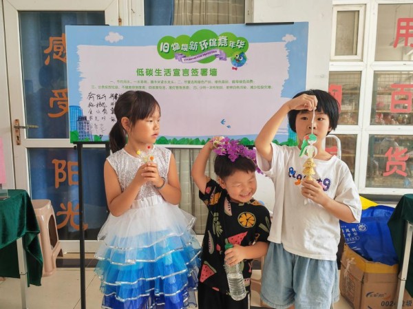 社区青少年也加入到变废为宝的行列中来,小朋友们充分发挥想象力,有的将家中多余的购物袋改造成收纳袋、纸巾盒,实现了购物袋的“重生”,有的用废弃塑料做了一朵塑料花,还有的用鸡蛋盒改造成了风铃......大家用奇思妙想对废旧物品进行二次改造,实现旧物大“变身”,并将作品带到活动现场兑换展示,为绿色环保贡献自己的力量。