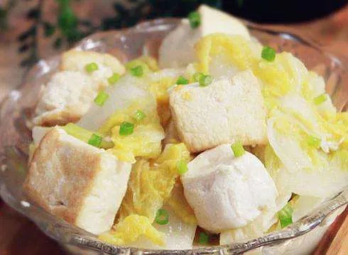 ③白菜炖豆腐白菜也是轻松用手抓两把,豆腐大约一个手掌大小。