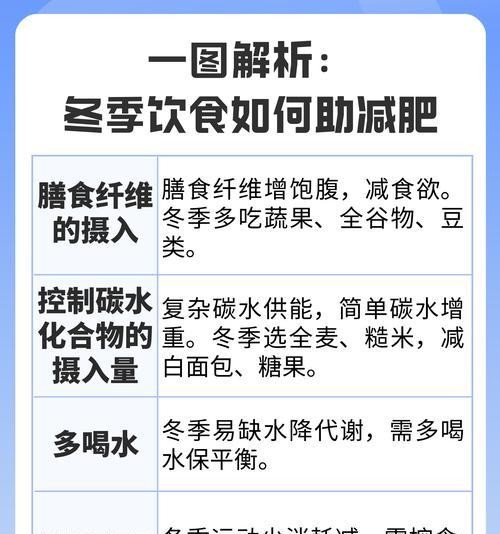 随着冬天的到来,很多人都面临着增加体重的问题。寒冷的天气让我们更容易选择高热量的食物,而室内活动减少也导致我们消耗的热量减少。然而,冬天并不意味着我们就放弃了减肥的机会。本文将介绍一些在冬季减速肥方面的有效小技巧,帮助你在寒冷的季节里减掉多余脂肪。