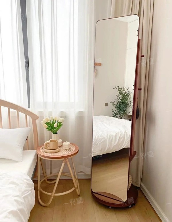 卧室有空间尽量选落地立镜,可调节角度和位置。空间小的话,镜子可以安装在侧边柜上。