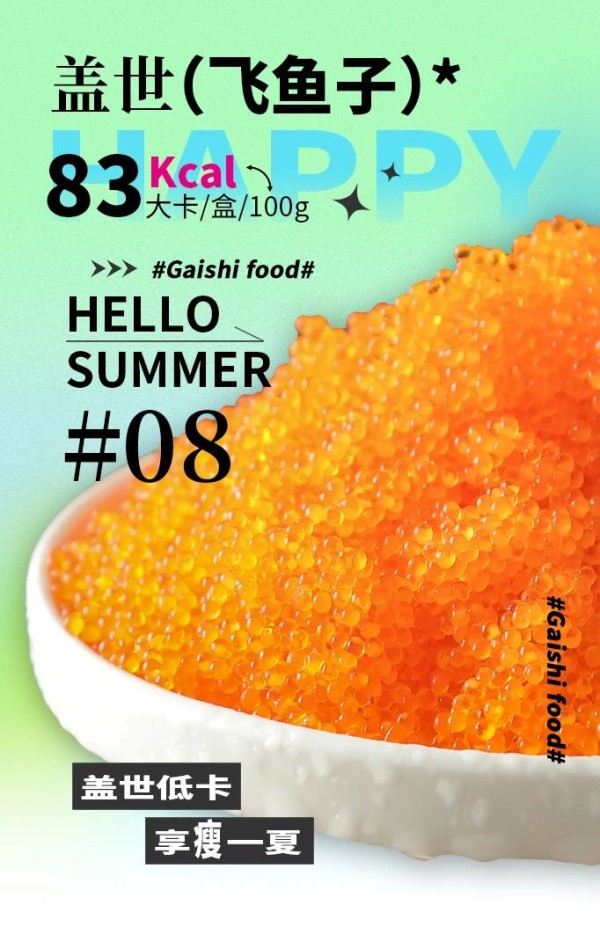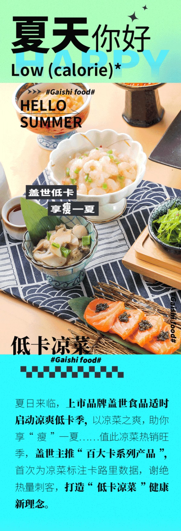 盖世芥末章鱼,每盒88大卡;盖世飞鱼子,每盒83大卡;盖世泡椒鱼皮,每盒90 大卡;盖世芥末甜虾,每盒89大卡……最近,盖世“凉爽低卡季”创新启动,宛如炎炎夏日中一缕清凉之风,让食材供应链行业及餐饮企业为之振奋。此次,盖世集结了众多低卡路里、高蛋白质的经典凉菜产品,荟萃成为“盖世百大卡系列产品”,首次为凉菜标注卡路里精确数据,率先揭开凉菜的热量底牌,引领凉菜产业进一步升级产品与服务,力推凉菜消费透明化。