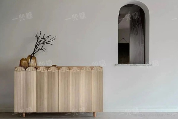 同样的,在餐厅旁或者走道的尽头,摆放造型更加多样的矮柜,上面陈列花瓶等摆件,也是一道靓丽的端景,能让这个空间更具丰富性。