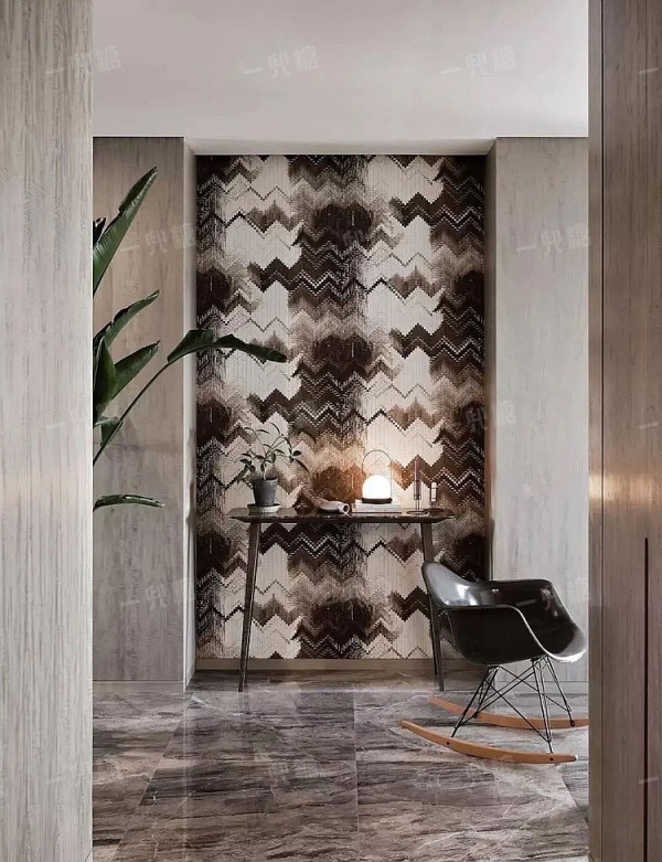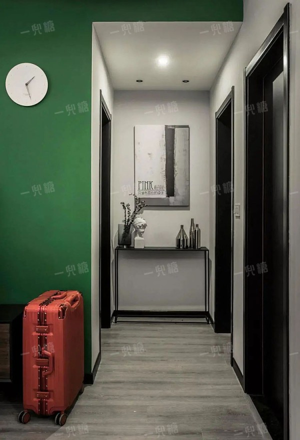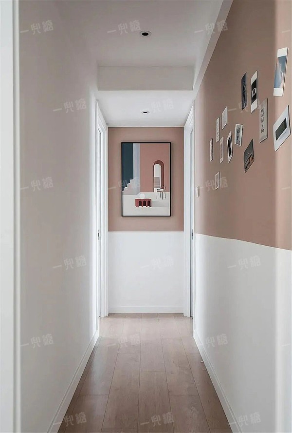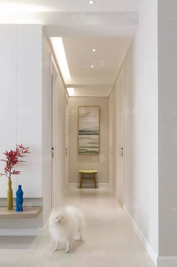 一般的走道空间都比较狭小,两侧都会开房门,考虑到空间的动线流畅,端景墙不需要做太多繁杂的设计。
