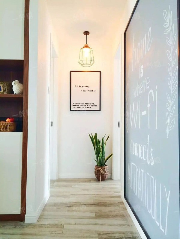 墙面端景的设计,能够将“景”巧妙的嵌入在墙面中, 好看的装饰画、有趣的墙绘、精致的相框,都可以提升走道空间的观赏性,