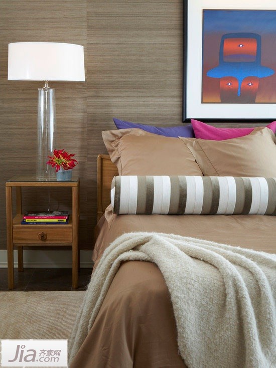 带有街头艺术风格的涂鸦挂画,色彩浓烈,画幅抽象,选用与素色的卧室,给予空间重量级的色彩注入,让人眼前一跳!这样的画幅,我们可以选择一款自己喜爱的画为中心,再布置一些小画框围绕做发散状,随意又不失整体感。
