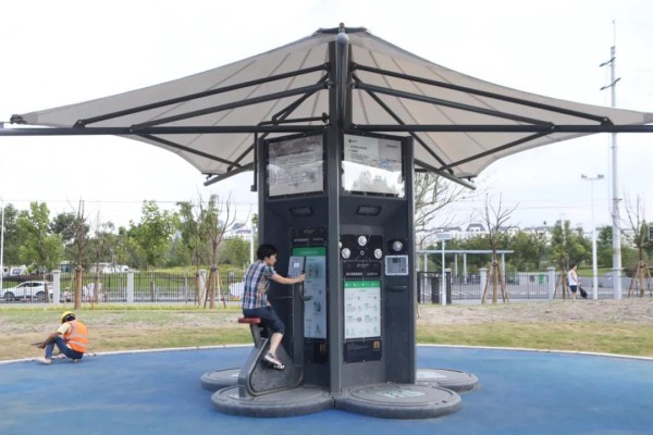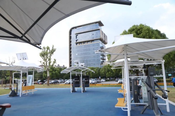 据悉,该智能健身场地免费开放,是长者运动健康之家的室外部分,全部采用了智能化健身器材,其中,智能五方位体测亭可同时容纳5人进行13项身体能力测试,使用者通过手机扫码链接器材,在智能面板、语音播报的使用指导下完成体测,最终以蓝牙传输获取体测数据,形成智能化体测闭环。