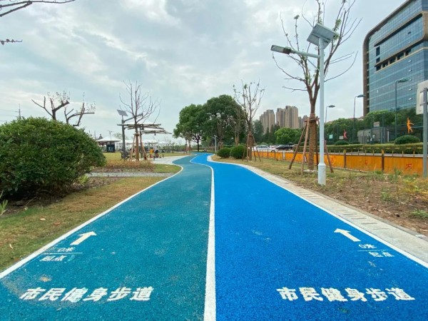 到了晚上,这里变得更热闹,跑步、遛娃……让健身运动变得更加便捷和触手可及。