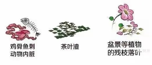 包括丢弃不用的菜叶、剩菜、剩饭、果皮、蛋壳、茶渣、骨头等,其主要来源为家庭厨房、餐厅、饭店、食堂、市场及其他与食品加工有关的行业。