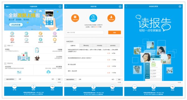 以体检为启始的轻健康管理是一个系统而长期的工作,其中体检定制、体检报告解读、体检报告储存在整个健康管理中有着非常重要的意义。依托于中康体检网的“微体检”、“读报告”是两款基于微信开发的轻健康管理应用。它们以体检为入口,不仅为用户量身定制体检套餐、在线预约体检,减少检前开单、缴费的排队耗时,在检后服务上,更提供了随身体检报告解读、体检报告的数字化、云存储、语义分析等大数据服务,为用户进行疾病风险分析、提醒,并对是否需要就医、膳食调理、生活习惯等各方面给出指导与建议,通过微调理改善身体状况。