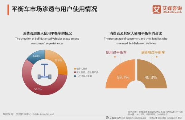 iiMedia Research(艾媒咨询)数据显示,大部分消费者表示周围使用平衡车的人数量不多(58.3%),59.7%的消费者或其家人曾经使用过平衡车。平衡车拥有一定的用户基础,当前社会中的普及程度正在逐步提升,但尚未达到广泛普及的阶段。用户对于平衡车的体验是积极的,愿意尝试并享受这一新兴交通工具带来的便利,随着技术的不断进步和市场的持续推广,平衡车普及程度有望进一步提高。