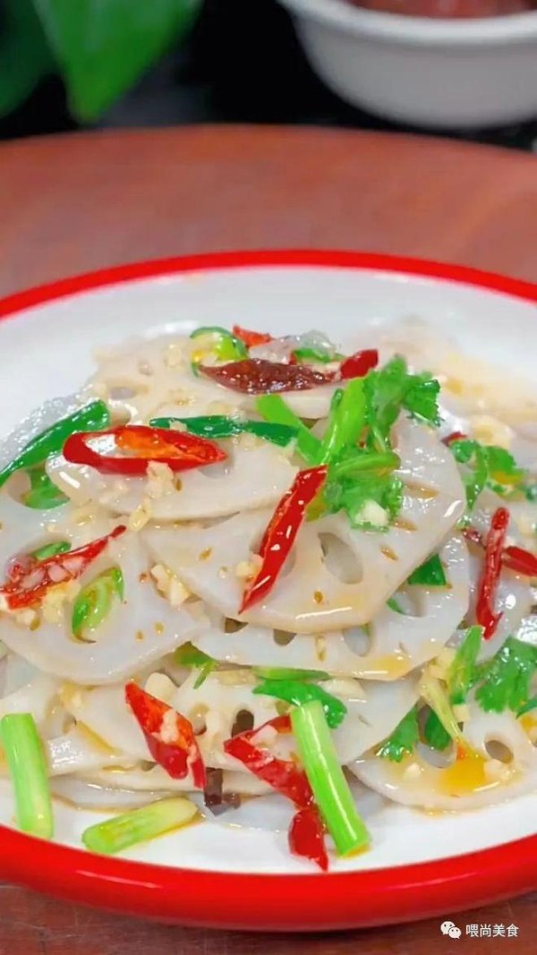 首先准备新鲜的莲藕,切成厚一点的薄片,锅中烧水,水开加入一勺盐和少许白醋,倒入藕片,这样煮的莲藕吃起来口感才会更脆,而且不容易发黑。焯烫二十秒捞出,过一下凉水,加入蒜末、姜末、葱段、辣椒面,淋入热油,激发出香味,再入加盐、鸡精、白糖、白醋,少许香油,再放点香菜,最后翻拌均匀,就可以开吃。这样拌点莲藕酸辣爽口,好吃又解腻,学会了,你也动手做起来吧。