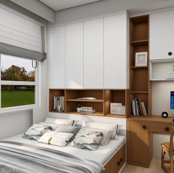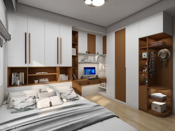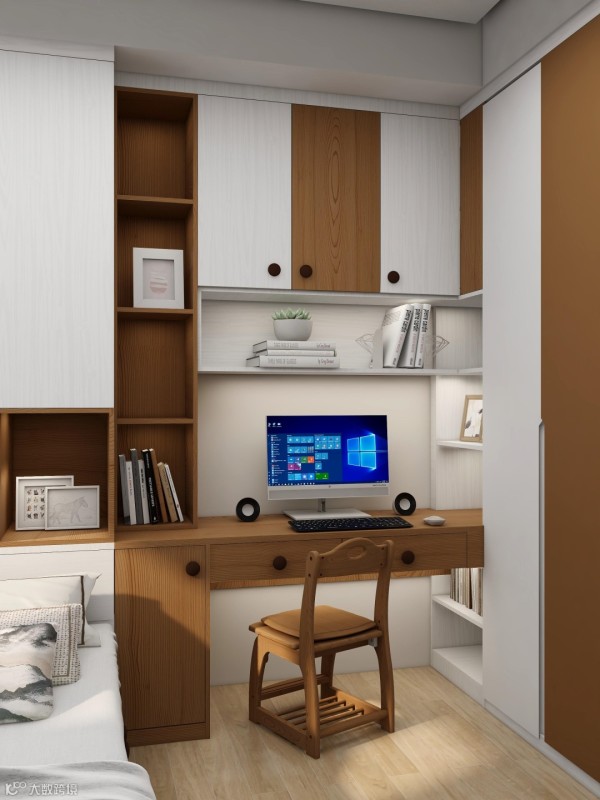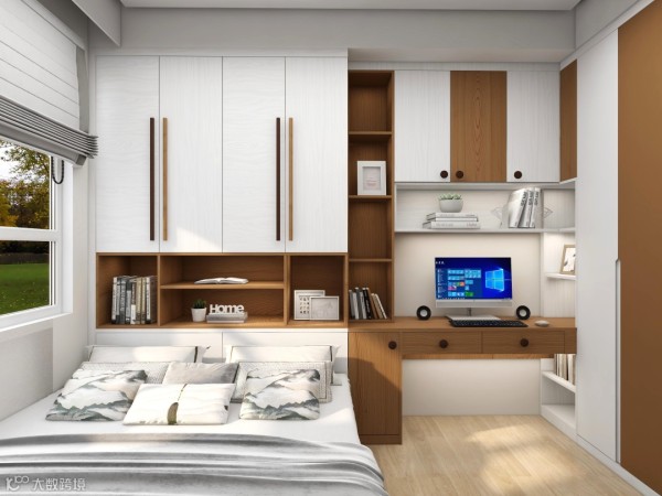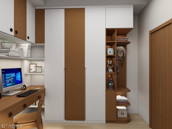 布局三:书桌侧接储物衣柜,拓展收纳功能