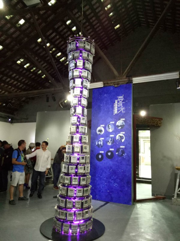 本次展览共展出11个艺术装置作品。现场最大的作品名叫《闪耀的纪念——广州电力丰碑》,高达5米,由171个广州家庭曾经使用过的电表构成广州地标建筑广州塔。
