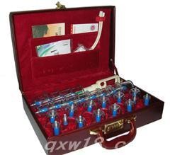 产品特点:负压拔罐不用火、方便简单、价廉物美;全家保健理想之选。罐内加有磁疗头,产生磁场增加疗效。拔罐器具有活血行气、祛风散结、止痛消肿、除温拔毒等作用,适用于多种病症。美观耐用:产品材质坚固,造型美观易用,耐碰撞。灵活通透:罐体呈淡蓝色透明状,罐内负压可随意调整,易于观察施治区域。安全密封:罐口呈圆弧形,平滑,圆润,与皮肤接触面大,气密性好,不易脱落。规格齐全:大小适宜,适合人体各部位使用。操作方便:不用火、不用电、安全可靠,携带方便,一学就会。适用范围主治 肩周炎、颈椎病、风湿性关节炎、高血压、脑血栓、感冒、神经性头痛、腰腿病、三叉神经痛、坐骨神经痛、腹泻、哮喘、便秘及急、慢性前列腺炎等病患。兼治 咽喉肿痛、耳鸣、耳聋、慢性鼻炎、风火牙痛、妇女月经不调、通经、盆腔炎、小儿遗尿、小儿厌食、蚊虫叮咬等病症。操作方法: 1、应先将罐体上端的阀杆向上提一下,以保证气体的畅通; 2、罐具扣于所选位置,将真空抽气枪口套住罐体上端后,垂直提拉拉杆次左右,达到目的适当负压(至罐内皮肤隆起,病人可耐受为度)。 3、罐具吸附体表后,将抽气枪左右轻轻旋转后拔下; 4、使用自拔管(将小头一端插入枪头,大头一端套在罐体上端),把罐具入在所选穴位上,提拉拉杆4-6次即可。 5、根据病情及体位,采用留罐法:罐吸拔在应拔部位后滞留一定时间(一般为5-15分钟),闪罐法(罐具吸拔于施治部位后,手握罐体快速外拔发出响声,以不留印痕为宜),走罐法(罐具吸拔后,将罐自上而下反复拉动直至皮肤潮红)及刺络拔罐法等多种方法; 6、治疗结束起罐时,将罐体上端阀杆轻轻提起(罐体吸拔力度太大,不易超罐时,可用手指按下拔罐部位外围皮肤某一点,至气体进入罐中)罐具便可取下。