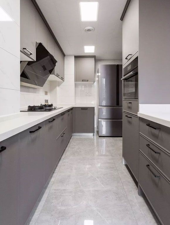需要根据厨房的大小来设计橱柜的布局方式,常见的橱柜布局有L型、U型、一字型,面积较大的厨房甚至可以设置岛台。