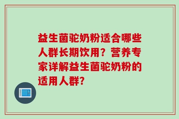 益生菌驼奶粉适合哪些人群长期饮用?营养专家详解益生菌驼奶粉的适用人群?