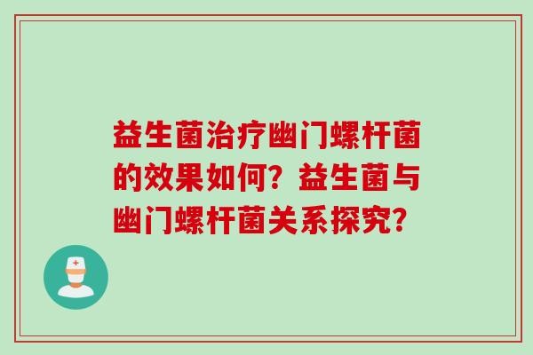 益生菌治疗幽门螺杆菌的效果如何?益生菌与幽门螺杆菌关系探究?