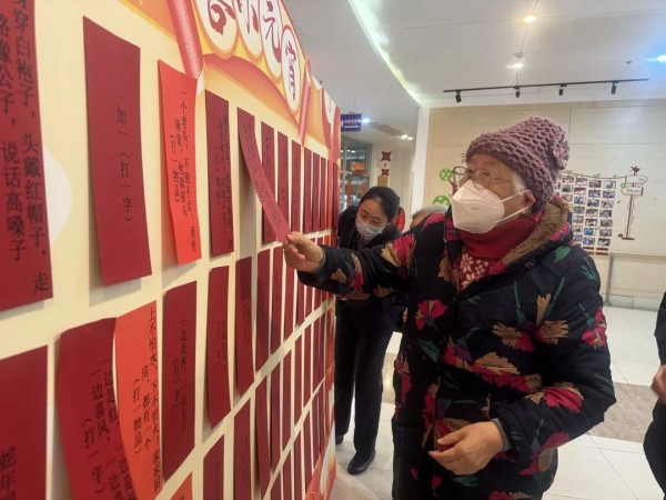 在上海中福会养老院,老人们伴随着喜庆的音乐,陆续来到活动现场。活动中最受欢迎的当属猜谜语环节,一条条写满谜语的纸条悬挂在活动中心,内容涵盖历史文化、生活常识、趣味成语等。老人们有的独自沉思,有的热烈讨论,一旦想出答案,便迫不及待地与工作人员核对,成功猜对后的喜悦溢于言表。“我很早来到活动现场,提前了解活动内容,形式丰富多彩。我最喜欢猜谜语,刚才试了两个,虽然有难度,但是我猜出来了,不仅开心,也锻炼锻炼我们老人思维。在现场也不只是参与活动,还可以跟老朋友一起聊天,大家一起开心笑笑,挺符合元宵节气氛的。”老年人陈有容说。