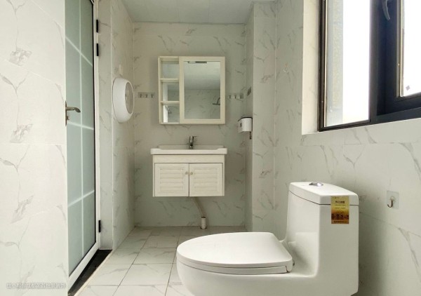 卫生间利用大理石纹理的砖进行铺贴,白色的洁具让整个空间都保持干净卫生。