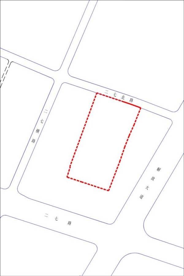 项目地块呈长方形,东侧3栋高层,西侧2栋小高层,均为西南朝向,与二七北路基本平行、与解放大道基本垂直,正面楼间距超过50米。主入口位于二七北路,大门位于两栋底商之间。