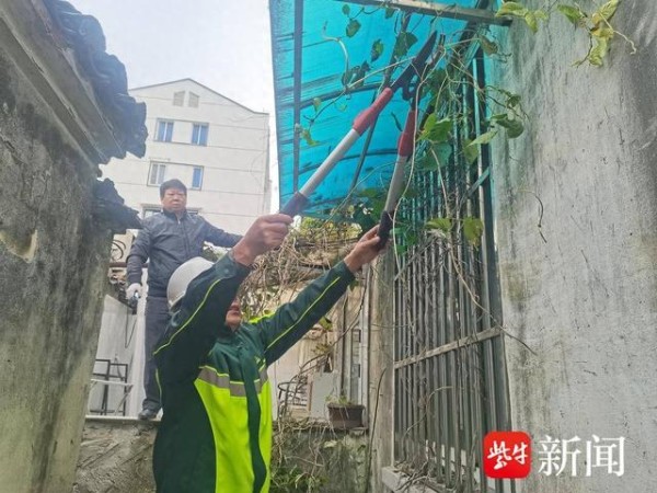 社区网格员、区人社志愿者、公房管理处和环卫一起将堵在门口的杂物搬走,突破“关卡”后,众人终于来到荒废的小院,环卫工作人员手持修剪工具,对杂乱的藤蔓绿植进行剪除,网格员和志愿者将废弃物搬运至清运车上,并对小院里的杂草、生活垃圾、碎砖石等进行全面清理……三个小时的时间,共清理出了十多袋垃圾,原本杂乱的小院终于被收拾得干干净净。居民祁粉娣阿姨就住在张先生隔壁,听到动静来看了下,给了大家一个大大的赞,她说天热的时候蚊虫多,还有点臭,现在环境好了。张先生说:“我偶尔会来看一下房子,开窗通风,后面一直堆杂物,倒没注意院子里这么乱了,给大家添麻烦了。”吴心欢当场向张先生科普了安全隐患防范措施,杂物要及时清理。