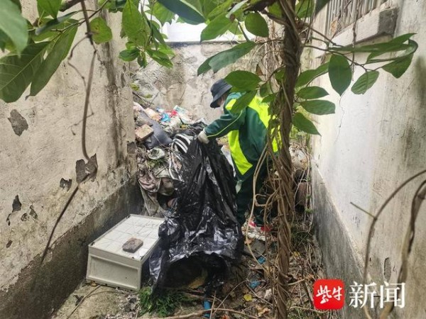 社区网格长吴心欢立即前去江阿姨家中,从窗户往下看的确十分凌乱,便与公房管理处联系,找到了荒废小院的张先生,约好时间共同清理。张先生这些年一直都在另一场所居住,得知情况后立即赶了过来,打开小院门的一刻,大家都愣住了,居然还有一道“关卡”。原来,去往小院有一条狭窄的通道和转角,而杂物等已将过道堵住,连进出都很困难。